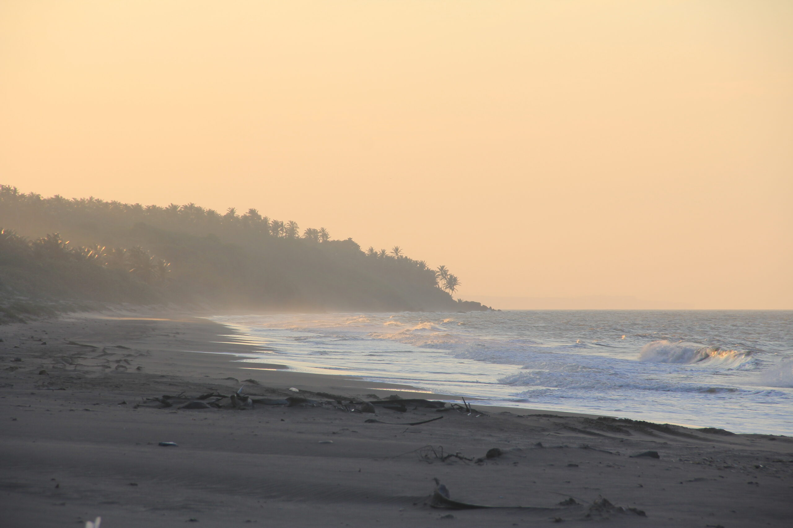 Esa mañana, con un ojo abierto y otro cerrado del sueño, estacioné mi camioneta debajo de una de las millones de palmeras que visten esta hermosa playa de la costa falconiana. Con los primeros rayos del sol iluminándonos, pude contemplar y comprobar lo hermoso del lugar antes de irme a tomar un merecido descanso. La playa es bastante larga y el agua es marrón claro, típico de la mayoría de las playas de Falcón, pero no por eso deja de ser un paraíso. A ambos extremos está custodiada por montañas desde donde se puede apreciar una gran vista del lugar y sacar buenas fotos. En el sitio no había un alma. Detrás de donde estábamos acampando hay una laguna de agua salada donde según comentan algunos hay muy buena pesca.