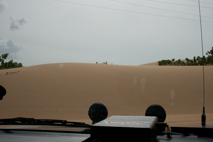 Médanos de Coro comiéndose la carretera que sube hacia la península