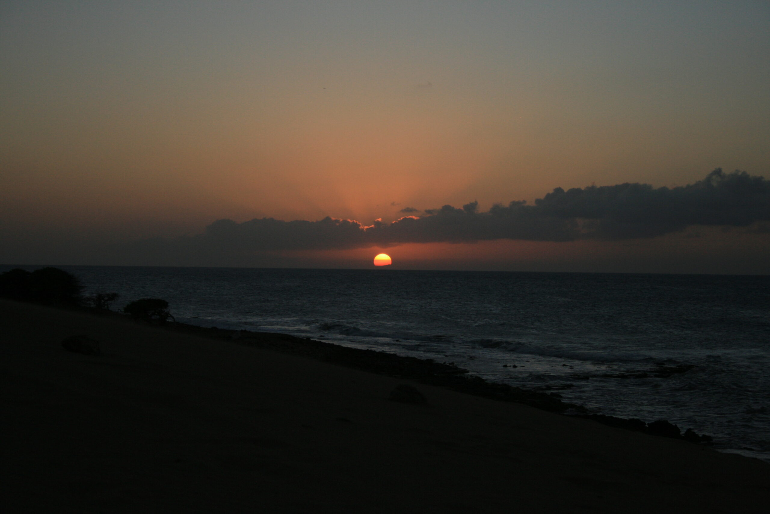 El poblado más cercano desde el punto donde acampamos estaba a unos 30 minutos lo cual lo hacía un sitio bastante inhóspito. Esa noche estuvimos sentados fuera de las carpas hablando. Dormimos, y a las 4 am me desperté, salí de la carpa y allí estaba, una de las vistas más insólitas que he tenido frente a mi en mi vida. Millones de estrellas en el cielo totalmente despejado, la extensa playa con arena de médano de lado a lado, y a lo lejos en el Mar Caribe, la costa de la isla de Aruba alumbrada por sus luces, la cual tenía una acumulación de nubes sobre ella que ayudaba a que resplandeciera aún más. Agarré una silla, y me quedé sentado solo contemplando aquel espectáculo.