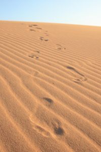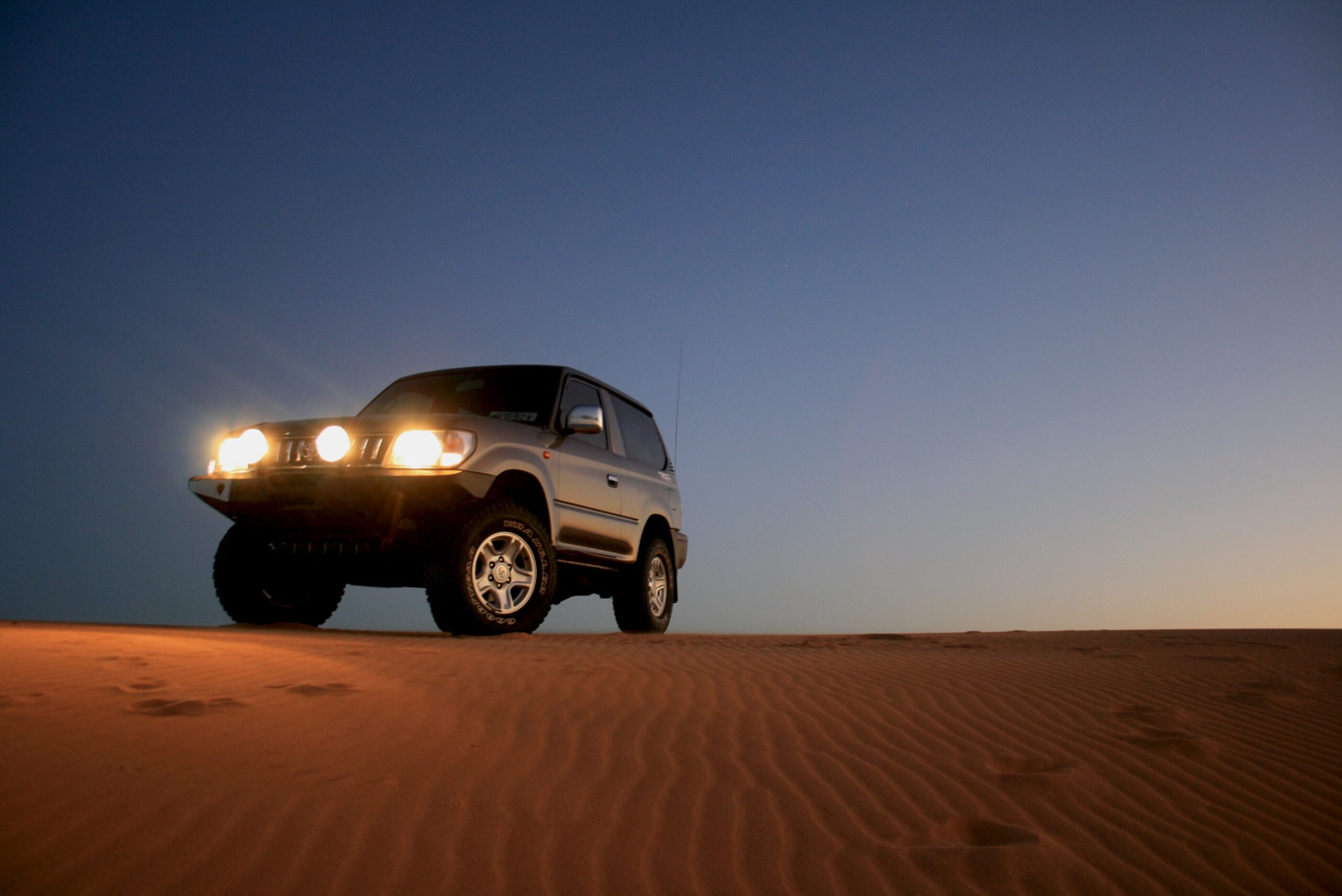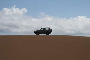 Seguimos nuestro camino unos 20 minutos más y de la nada se nos atravesó la primera de 3 grandes dunas que componen el bello paisaje donde íbamos a pasar la noche. ¡No lo podíamos creer! Subimos la duna y en la punta nos bajamos felices. El paisaje es realmente impresionante. Una soledad increíble, brisa muy fuerte y de ñapa la isla de Aruba enfrente. Nos dispusimos a avanzar un poco más hasta llegar a un lugar apropiado donde instalamos el campamento. A las 6 pm brindamos todos con el atardecer y dimos gracias a Dios por haber llegado bien a tan maravilloso lugar.