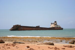 Como a las 4 pm llegamos al faro de Cabo San Román, lo que quería decir que estábamos oficialmente en el punto septentrional, es decir, el punto en tierra firme más al norte de Venezuela. Desde ahí se pueden captar estaciones de radio y señal de celular de Aruba. De ahí en adelante olviden la señal de celular. En la playa antes del faro llamada Bahía de Playa Escondida, se encuentra el naufragio del buque Denisse Marie, a escasos 25 metros de la orilla. Este se dedicaba en la década de los 70’s al transporte de sal. Algunos dicen que en medio de una tempestad, se perdió y encalló allí, otros dicen que fue para cobrar el seguro. Lo cierto es que resulta impresionante ver un buque de esas enormes dimensiones, tan cerca de la orilla.
